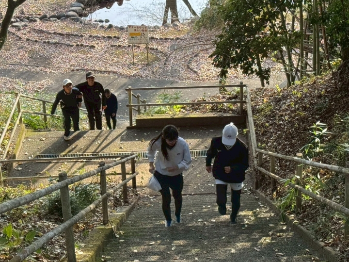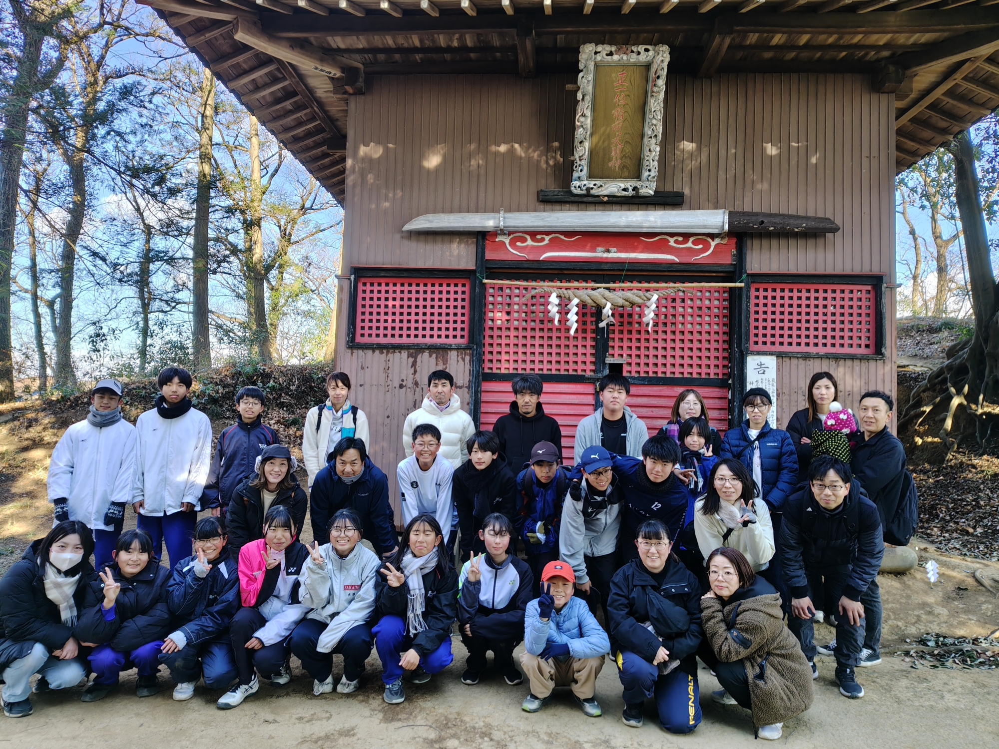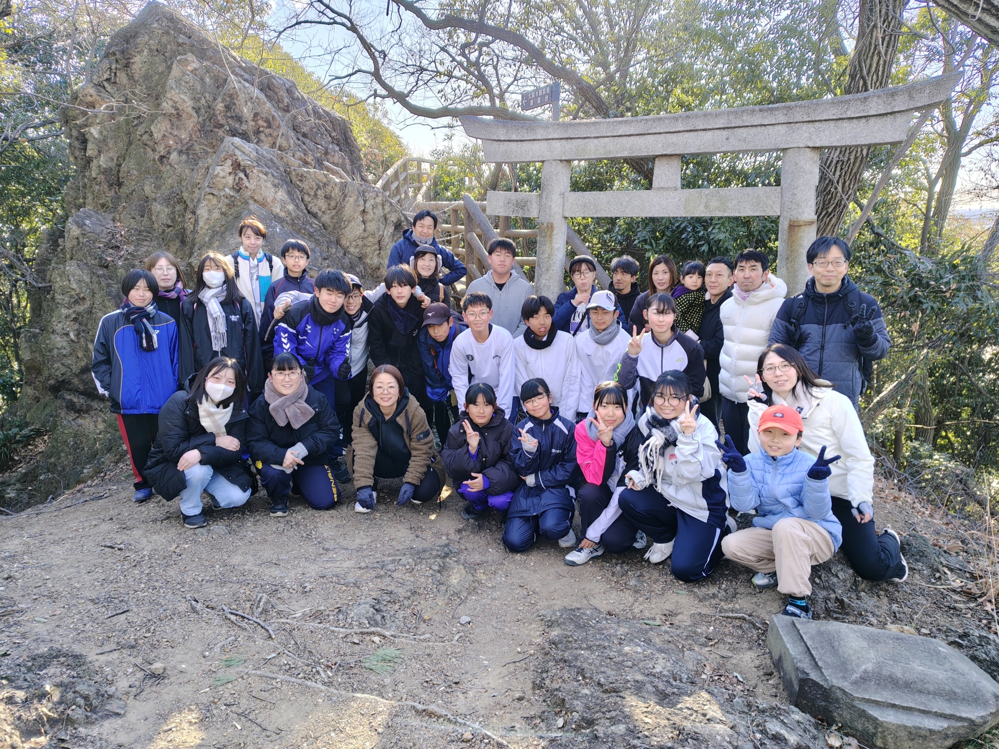 選手、親御さん、兄弟、姉妹と山を登り、