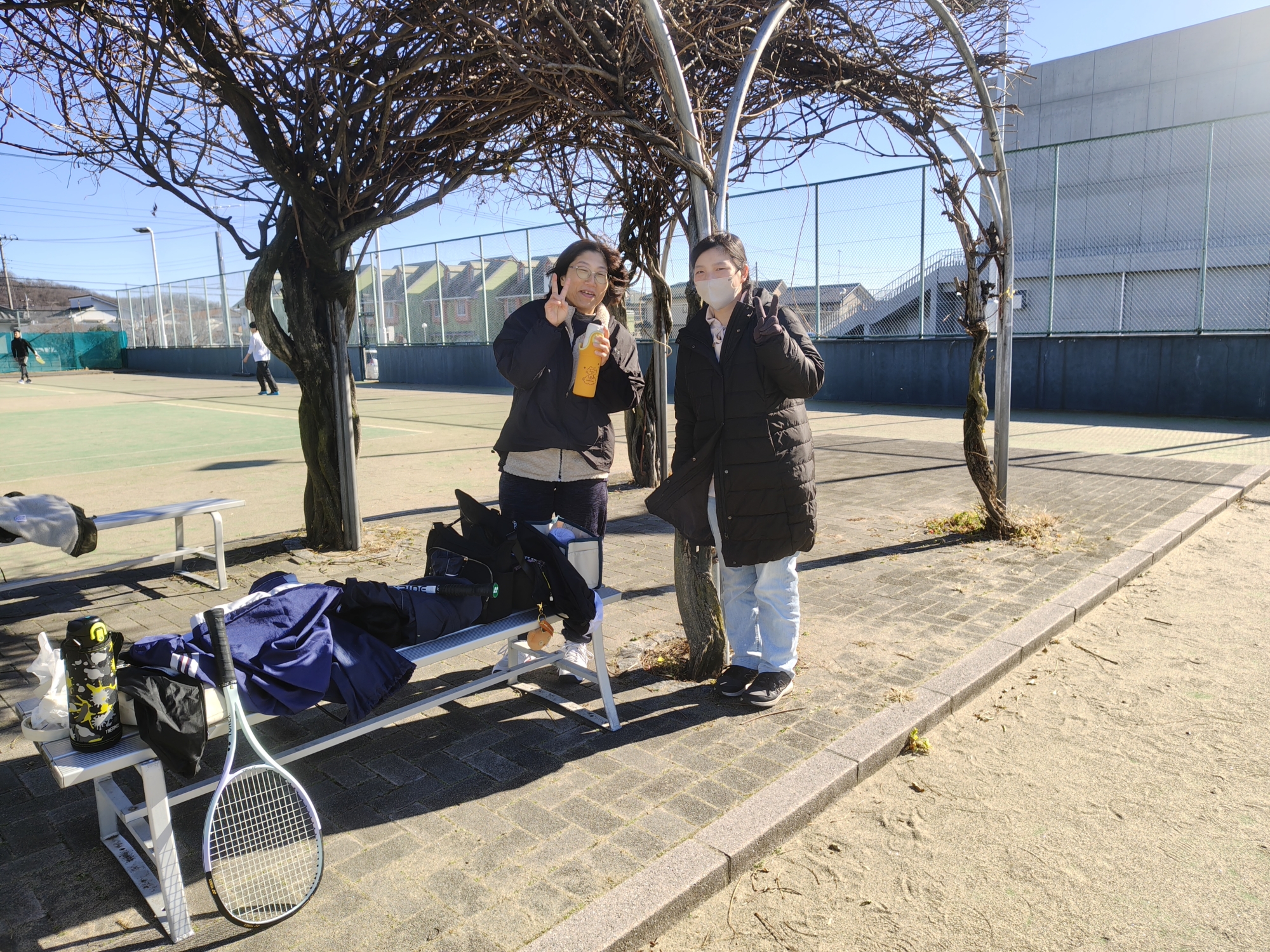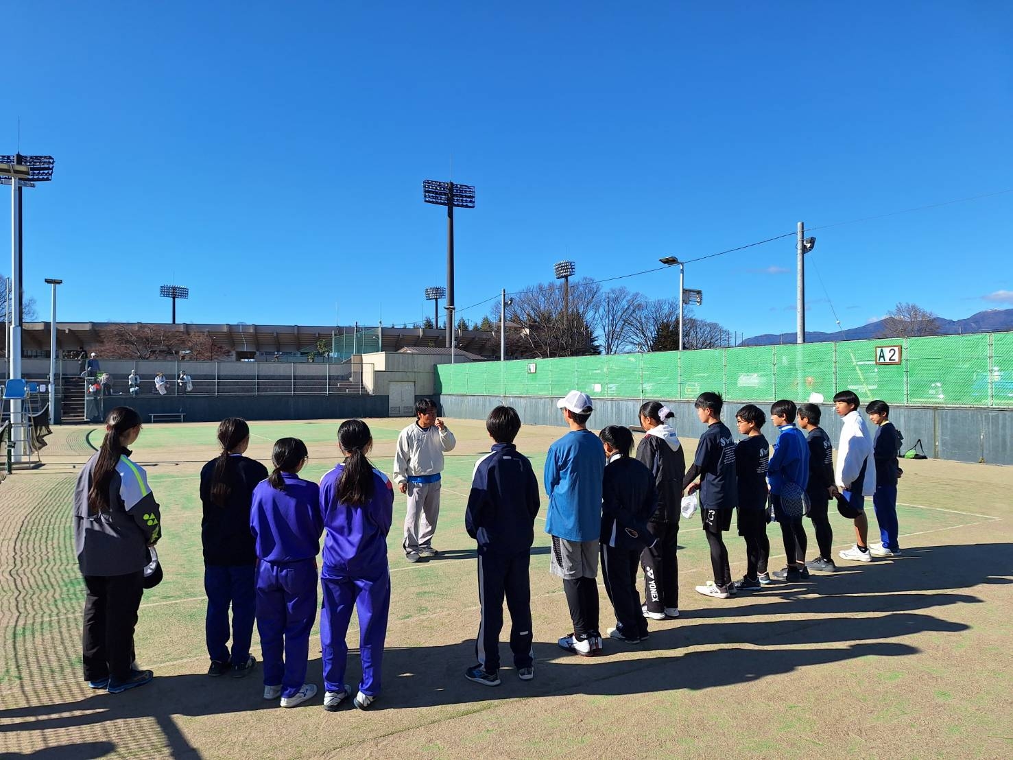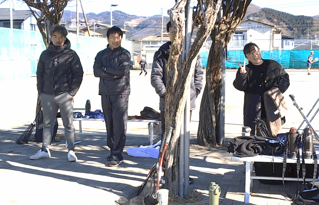 草木湖を望むコート、晴天に恵まれた。