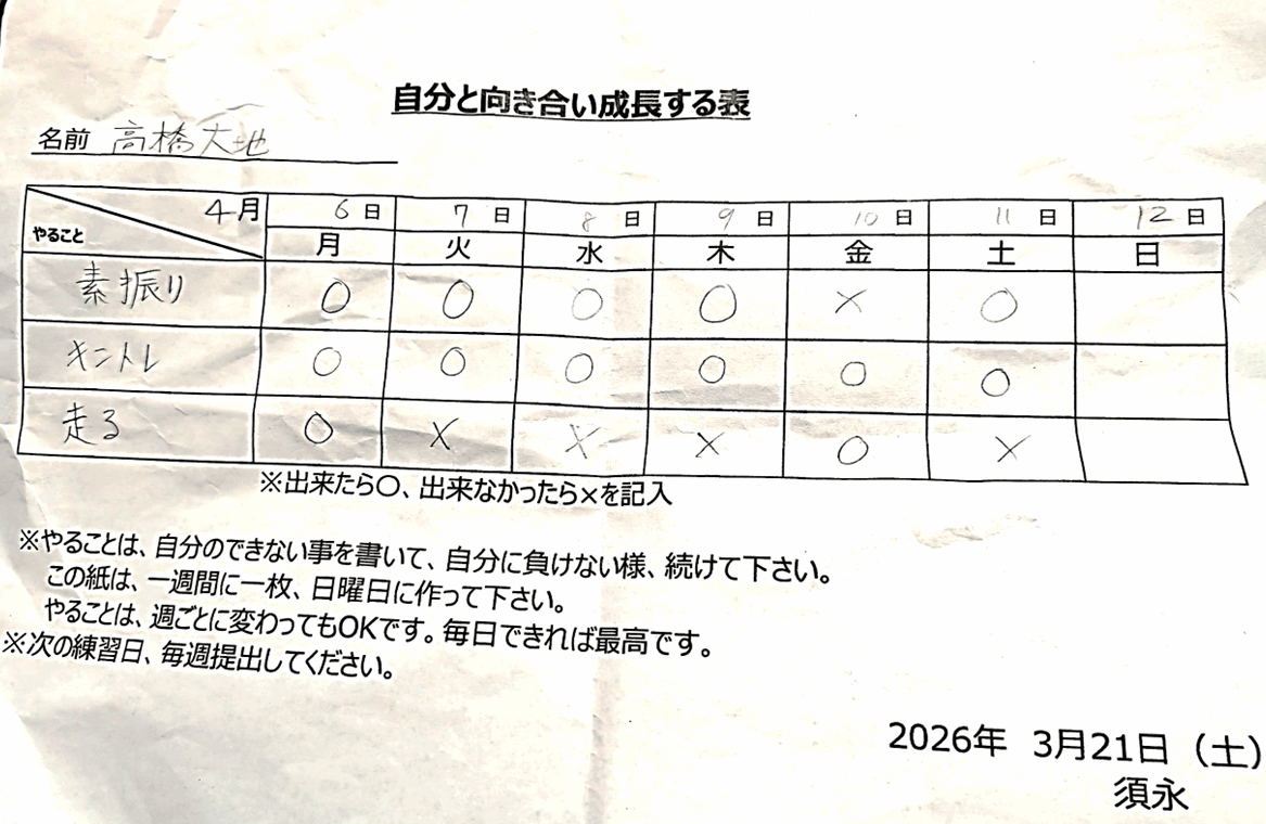 自主練計画「自分と向き合い成長する表」